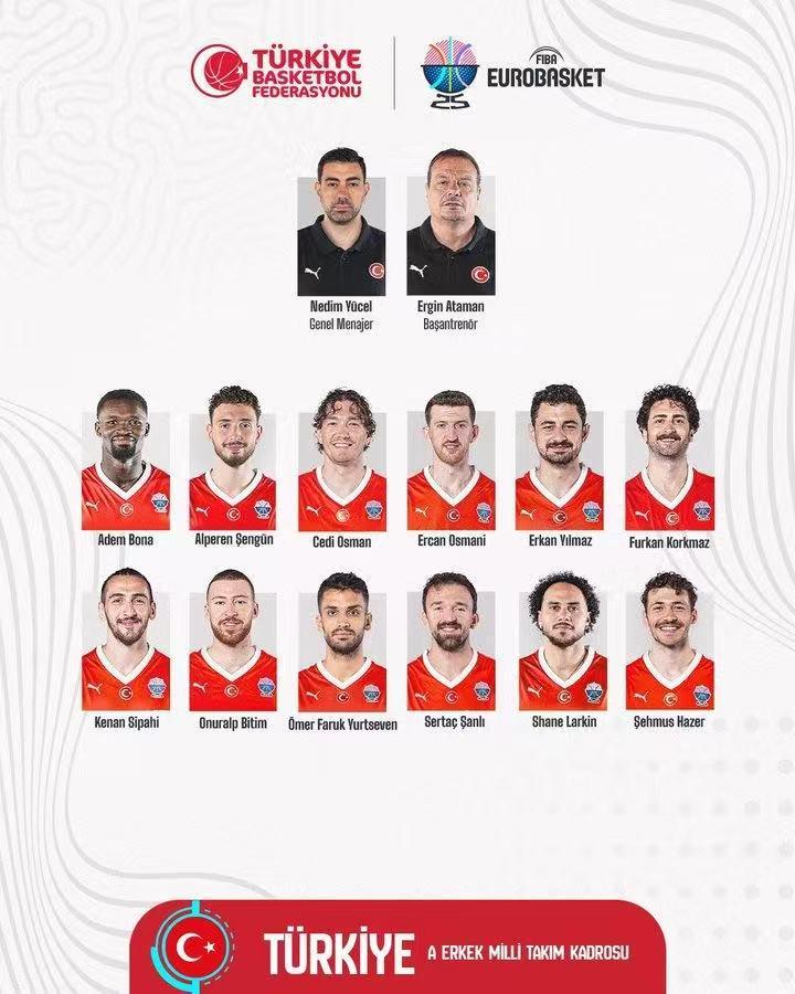 土耳其男篮具体名单为: