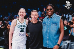 纳什纽约观战WNBA自由人比赛!合影中的纳什反而略显小鸟依人