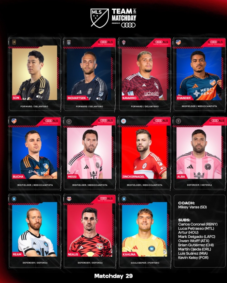 美职联第29比赛日最佳阵:梅西、孙兴慜、阿尔巴在列